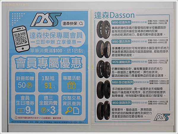 「達森快保」是「安達輪業」成立的公司,輪胎正是本業,所以來達森快保可以買到「達森輪胎」,有多種不同係數的輪胎可以選擇。