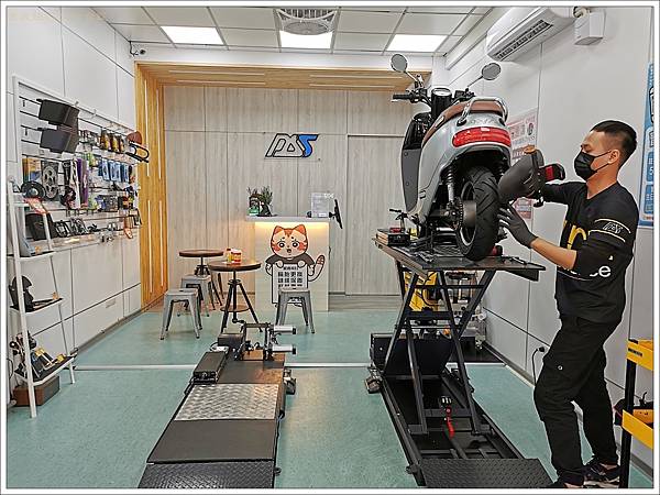 達森快保店面沒有一般油車機車行的油膩膩,非常乾淨整潔,猜想員工聽到5S 就會皮皮挫。只要是PBGN的電動車都可以來達森快保保養,簡單來說,如果你的電動車是到Gogoro的電池交換站換電池,那就是PBGN的電動車,你就可以到達森快保保養維修。