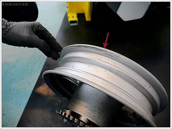 拆除輪胎後,會看到輪框上的髒污,如果在換新輪胎上去前,能夠先清乾淨,新輪胎的壽命就會更長。