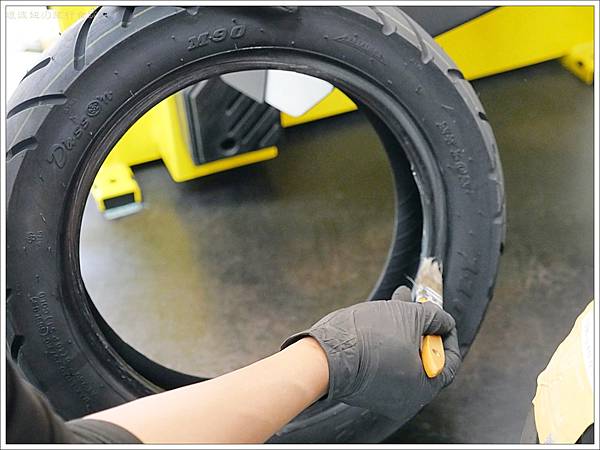 裝上新輪胎前先上油,安裝時更滑順不傷輪框。
