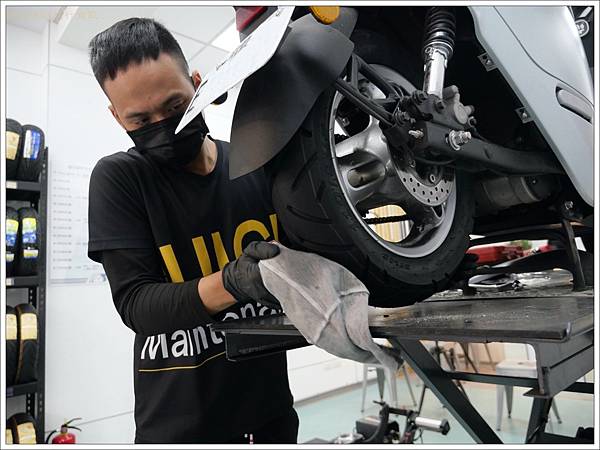 很多人不知道新輪胎上面有層輪胎蠟,剛落地可能會有點滑,達森快保的技師也會貼心的將蠟擦掉。