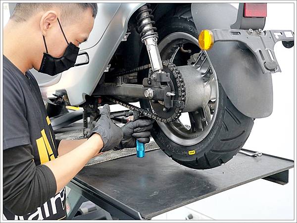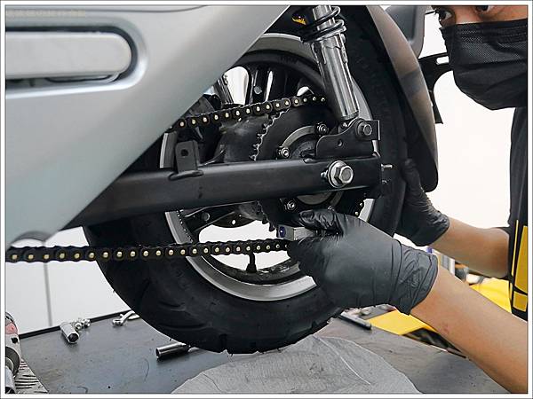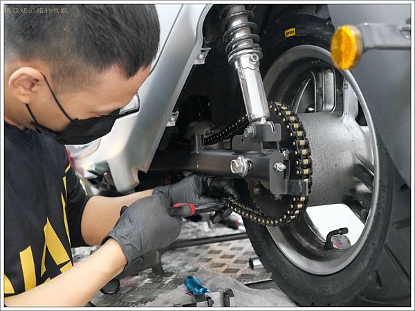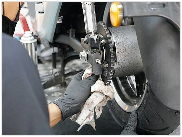 Gogoro的鏈條離地面很近,因此只要下雨天就會沾上很多髒污異物,所以才會建議自己平時要自己保養。不過自己上鏈條油也要找個不污染環境的地方,而且上下班都來去匆匆的,所以我們家其實很少自己保養。其實達森快保的最基礎保養只要$150,有空的時候就來上上油也很可以。