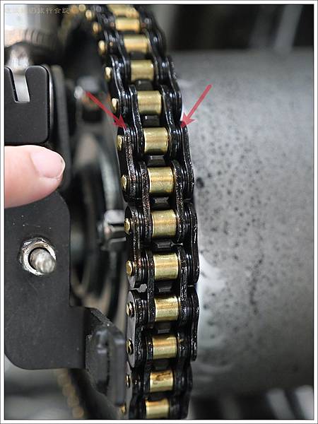 接著要上鏈條油,這也是我們平常自己可以做的,但是大家知道鏈條油要上那個位置嗎?是上在上圖箭頭指的二側油封,不是上在中間金色的部位喔,大家平常上油有上對地方了嗎?