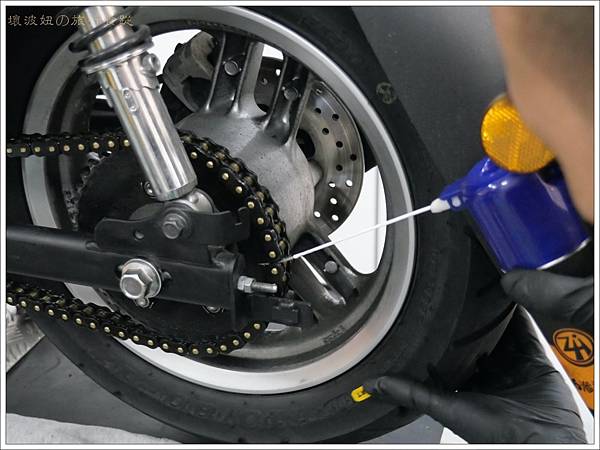 濕式鏈條油上完後,會看到有「牽絲」。其實如果是到達森快保做高階保養,就會先上乾式鏈條油,最後再上一層濕式,簡易保養就只上一層濕式。
