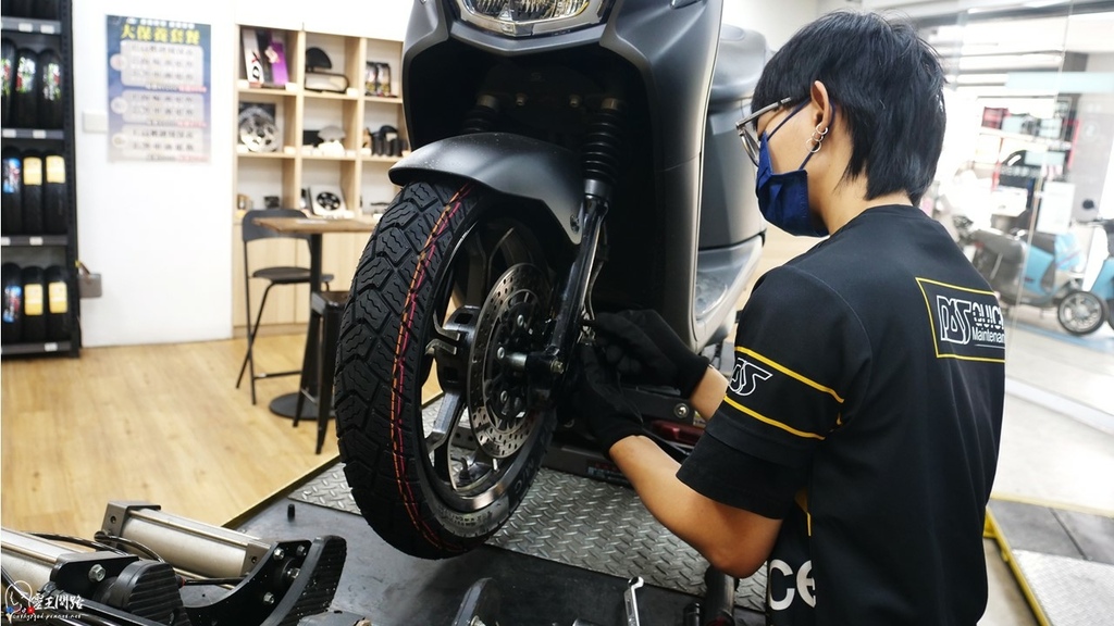 換前輪的輪胎大概15-20分鐘可以完成,不用擔心要等很久,剛換完輪胎大概需要一週時間回店內打一次胎壓,為了讓輪胎跟輪框之間更密合。