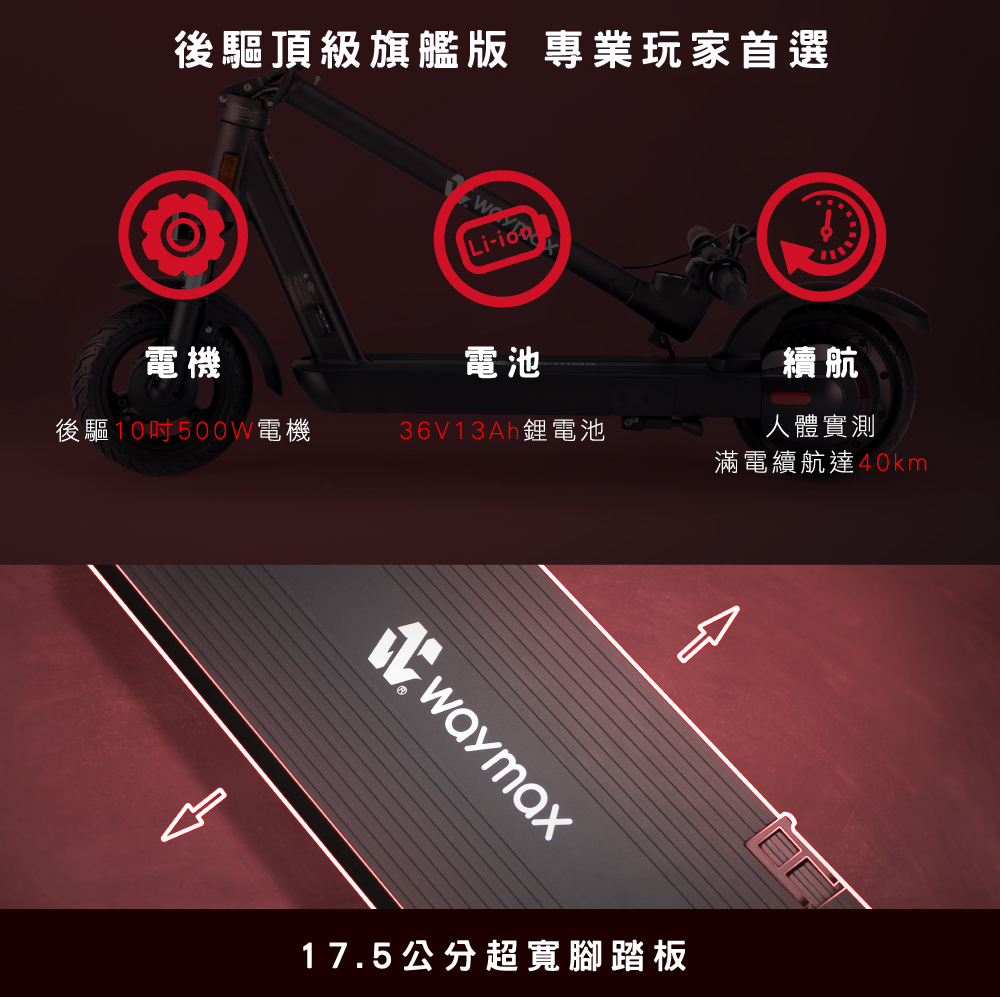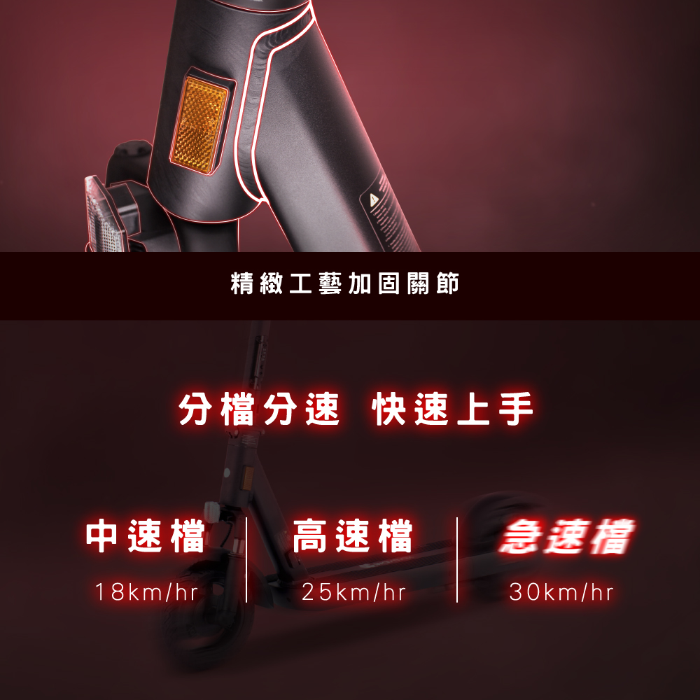 最高時速:低速檔 18km/hr、中速檔 25km/hr、高速檔 30km/hr (高速檔務必謹在空曠處使用)