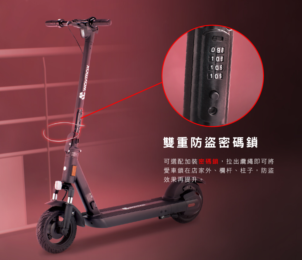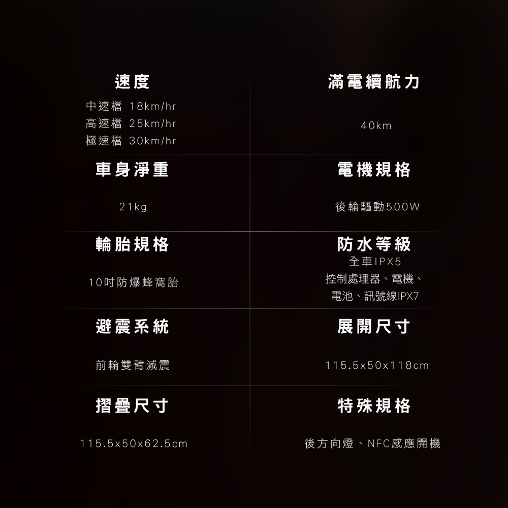 特殊規格:後方向燈、NFC感應開機、立管配有專用密碼鋼繩鎖